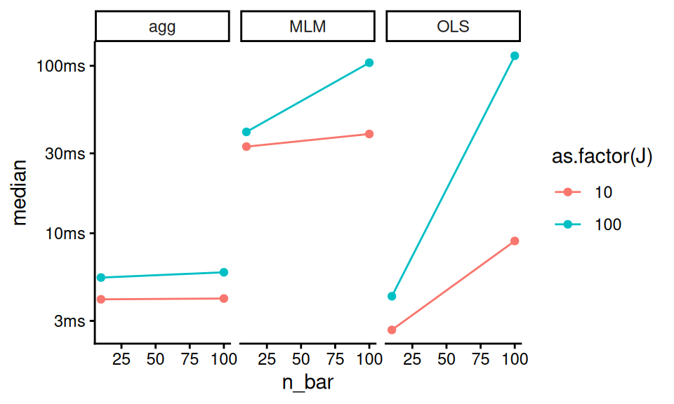 The reason this is important is we are now doing our group aggregation only once, rather than once per method. We benchmark to see our speedup: